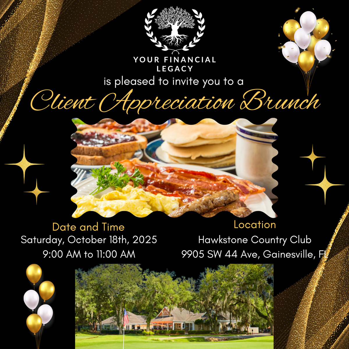 We would like to formally invite you to Your Financial Legacy’s 2025 Client Appreciation Event!